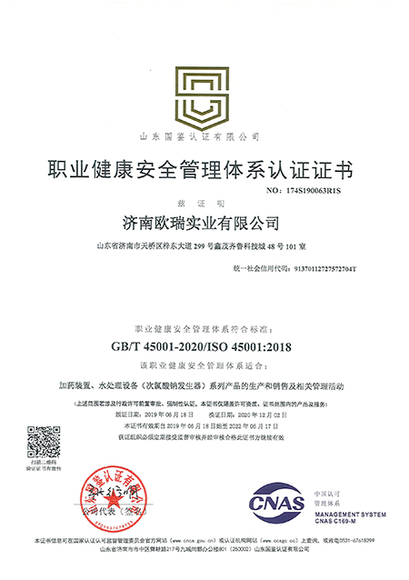 職業(yè)健康安全管理體系認(rèn)證證書(shū)
